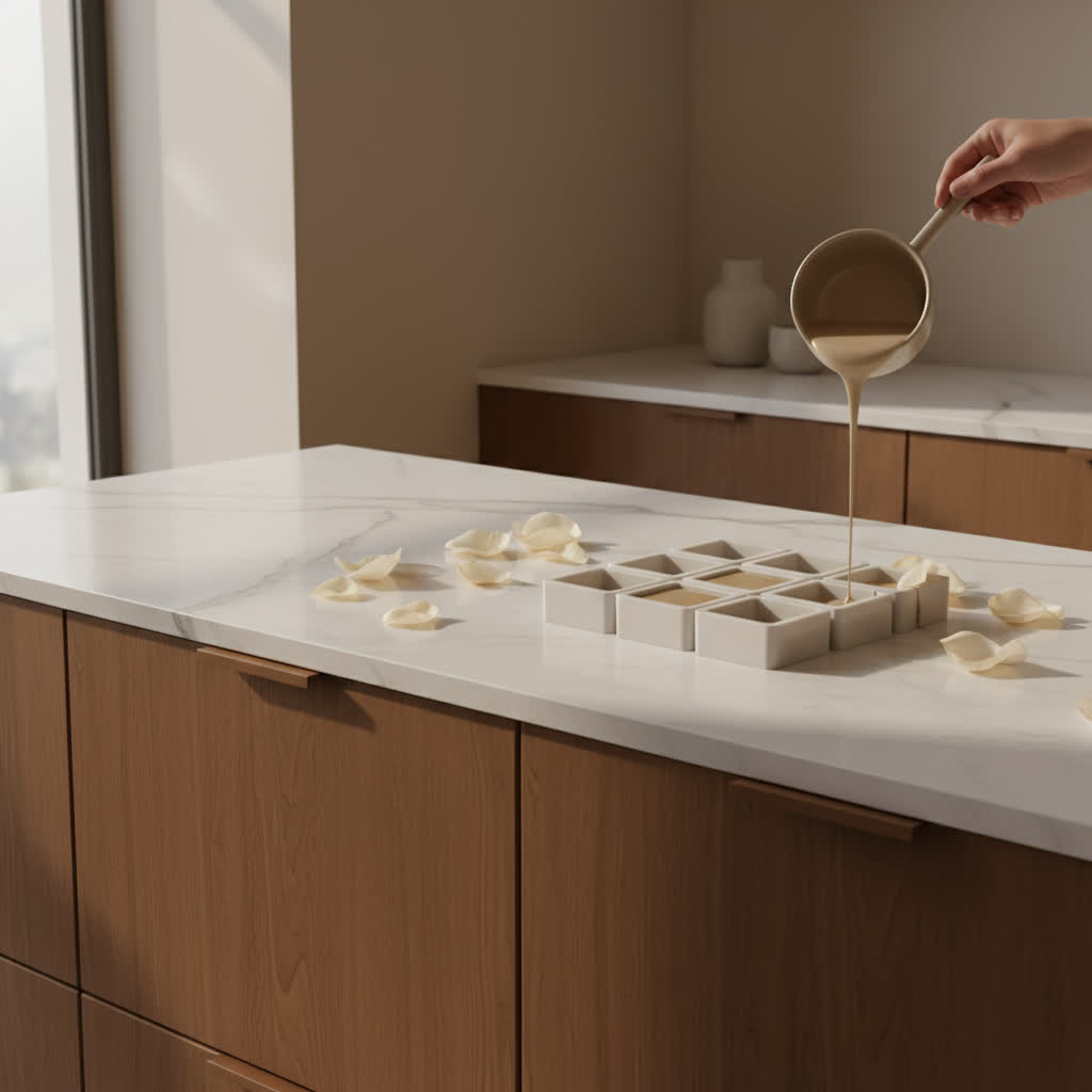 Hand-poured in harmonious tones of white, beige, and brown, each melt releases a delicate fragrance that enchants the senses.